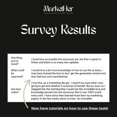 Tools, strategy, and AI that help you grow your business - without losing your mind. MarketHer is your all-in-one marketing platform built for women who mean business. And to give women in business the tools, strategy, and support to finally market with confidence.