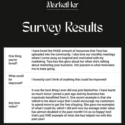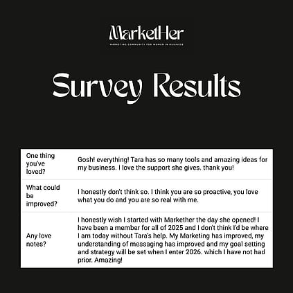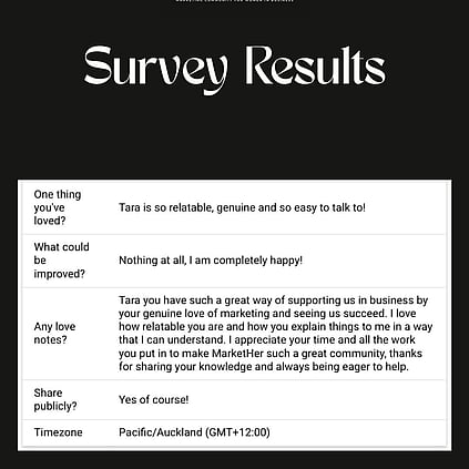 MarketHer, founded by Tara Langman) is a New Zealand-based marketing strategy consultancy helping founder-led businesses create clear priorities, stronger messaging, and predictable growth - working primarily with female founders across New Zealand and internationally.